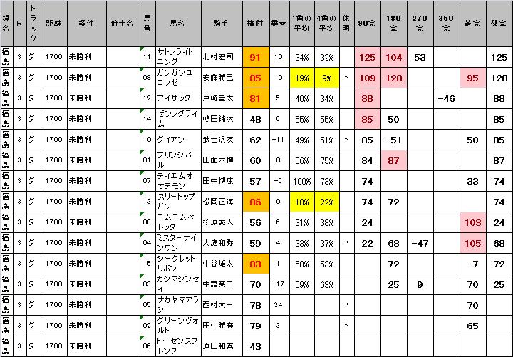 他では、もちろん対象馬のアイザックと、ローカル適性をみせる松岡の先行残り。