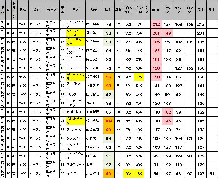 いつも通りの検討。指数トップ10の網かけと騎手格付上位5名が一致した馬を買うということ。