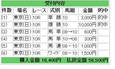 当日スピルバーグの馬体重が気になったので、実際に購入した馬券が以下の通りです。