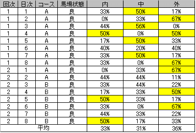 去年の札幌芝1200の1~3着馬の枠別集計です。