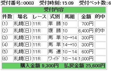 受付番号が3になっているように、あまり馬券を買ってませんが細々とやってます。
