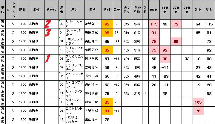 とにかくいつも通りの検討方式、騎手格付け上位5名と、指数上位トップテンの一致馬を馬券対象にします。