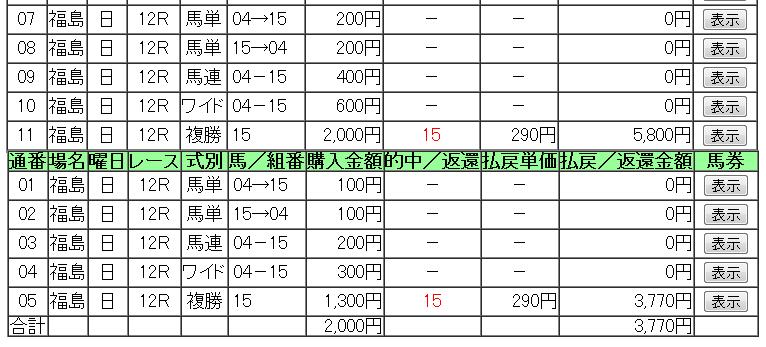単勝を買っていないのと、追加購入してるにも関わらずショボイ金額ってのが、いかにもヘタレ馬券